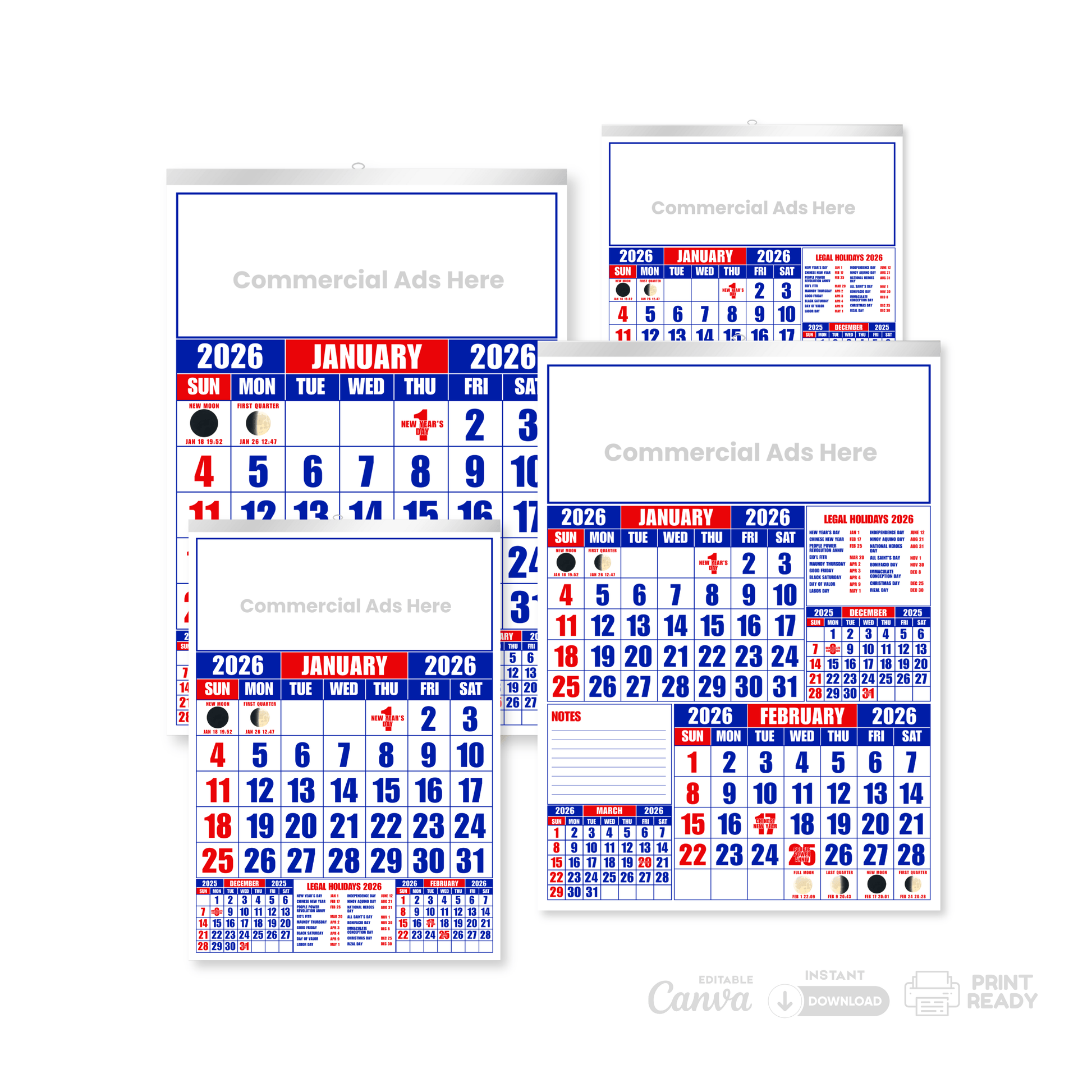 2026 Commercial Calendar – Canva Template (Editable + Printable A4/A3)